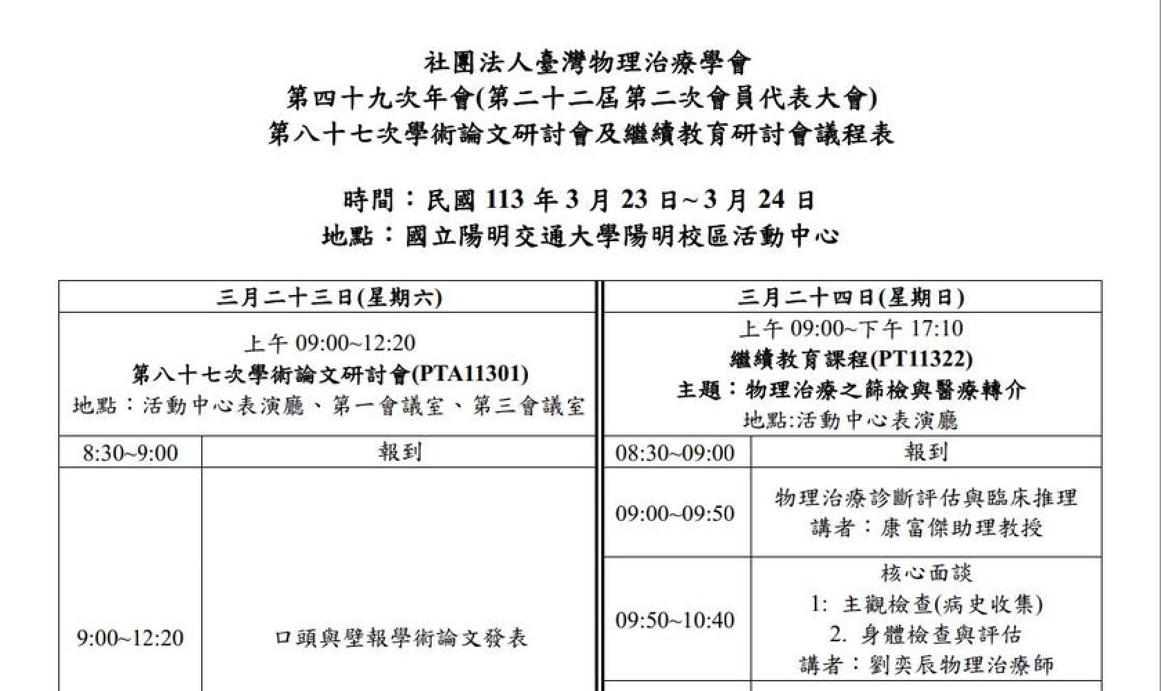 臺灣物(wù)理(lǐ)治療學會第49次年會及學術研究會